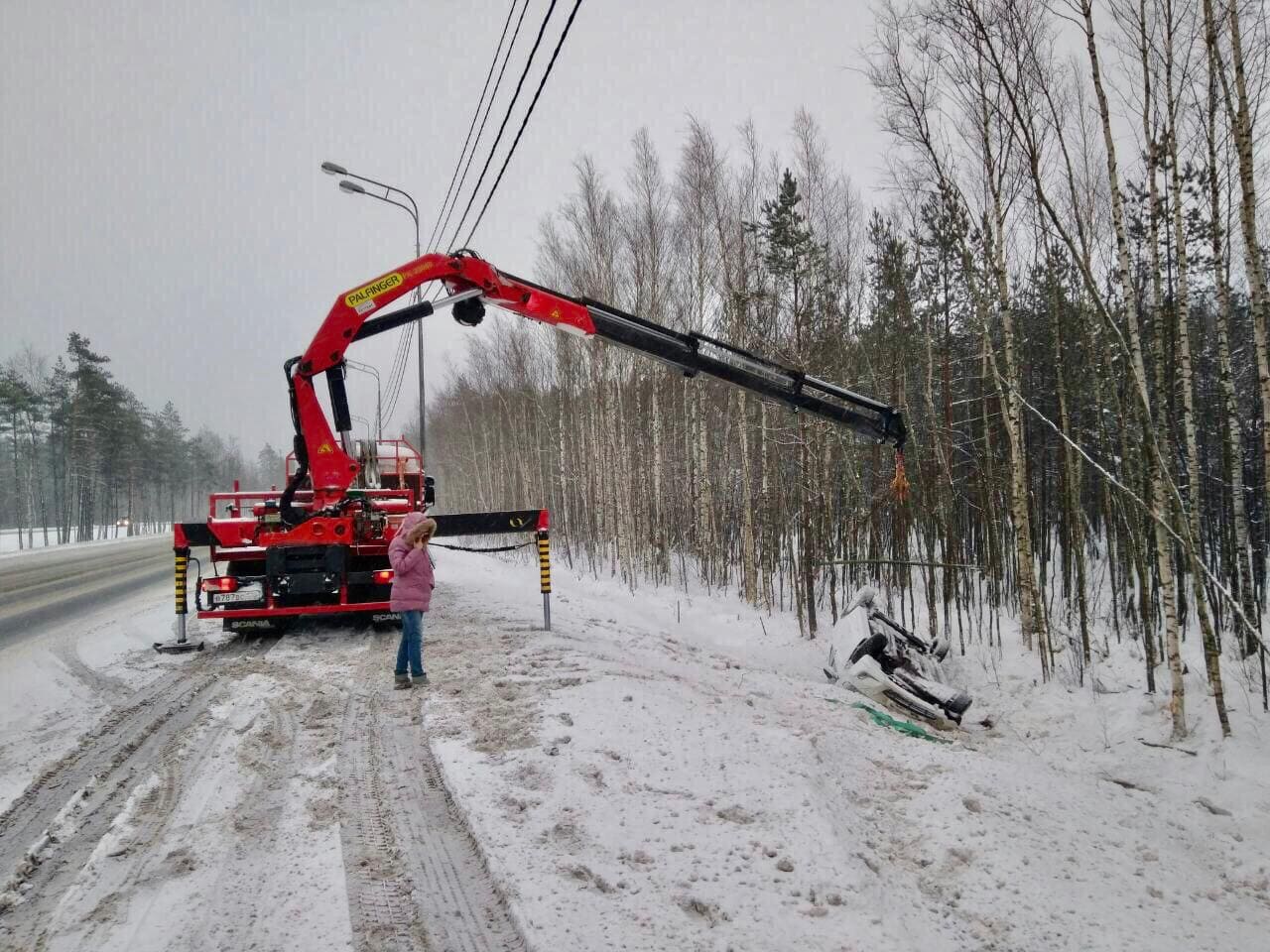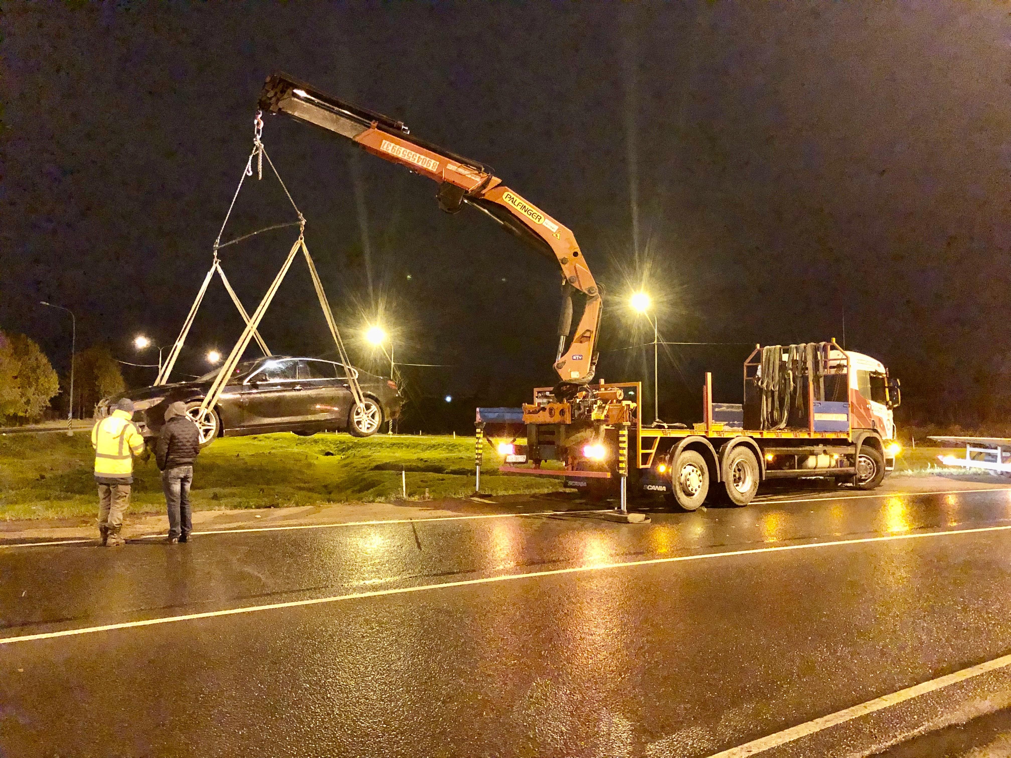 Эвакуировали иномарку после ДТП в Ленобласти Кировского района. Она была перевернута в кювет. Аккуратно достали и транспортировали в автосервис.